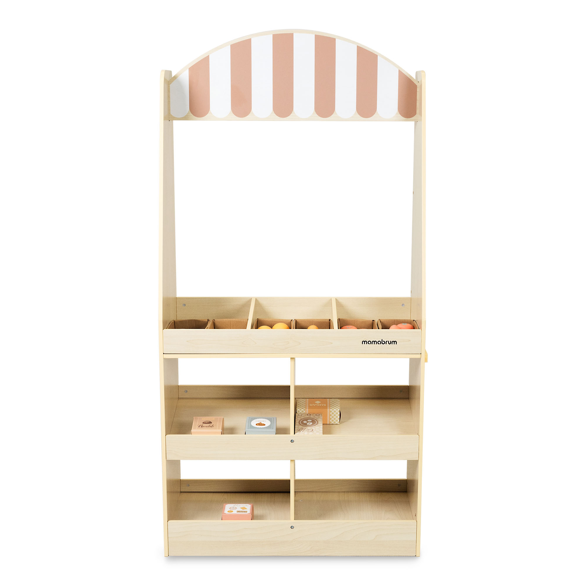 Változtasd át a gyerekszobát nyüzsgő szupermarketté! A Mamabrum fabolt egy igazi kreatív játékközpont, ahol a kicsik eladók vagy vásárlók szerepét ölthetik magukra. Realisztikus dizájnja , nagy SZUPERMARKET felirata és praktikus táblája az árak vagy promóciók felírására azt az érzést kelti a gyerekekben , mintha egy igazi boltban lennének . Nagyszerű módja a képzelőerő fejlesztésének, a számolás megtanulásának és a szociális készségek gyakorlásának – mindezt egy soha el nem múló mókán keresztül!