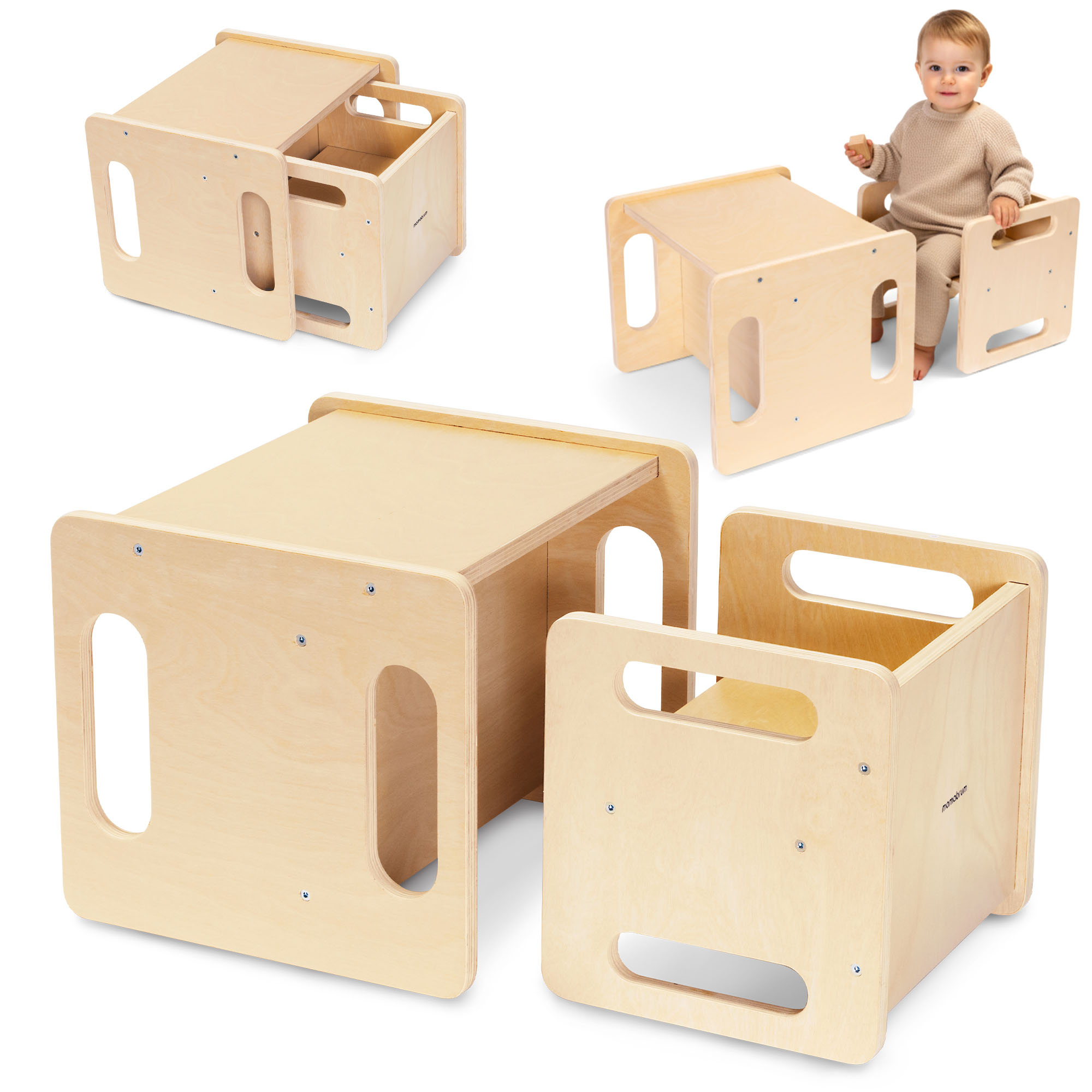 Fa asztal és szék platform funkcióval - multifunkcionális Montessori szett gyerekeknek