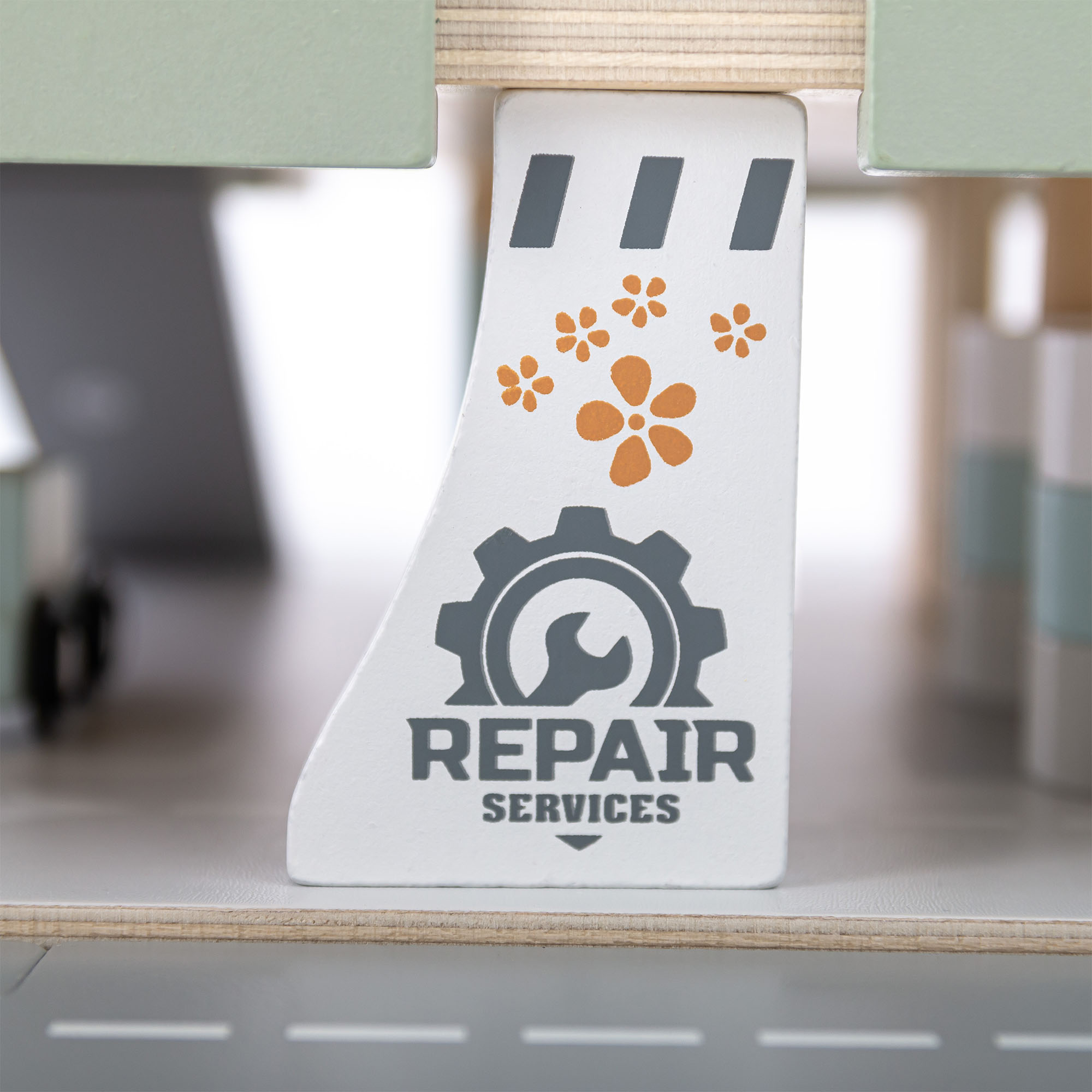 Minden garázsszint új lehetőségeket kínál! A szinteket állatképekkel jelölték: medve - 1. szint, elefánt - 2. szint, oroszlán - 3. szint. Az autók használhatják a mozgó görgőkkel ellátott autómosót , tankolhatnak a benzinkútnál, vagy csatlakozhatnak egy elektromos töltőponthoz. A bejáratnál lévő sorompó , a közlekedési lámpák és a közlekedési táblák realisztikusabbá teszik az élményt, míg a tetőn lévő helikopter-leszállópálya megnyitja az utat a légi kalandok felé. Az úti rejtvények lehetővé teszik utcák és bekötőutak létrehozását, a további javítási és szervizelési területek pedig a járművek karbantartását tanítják.