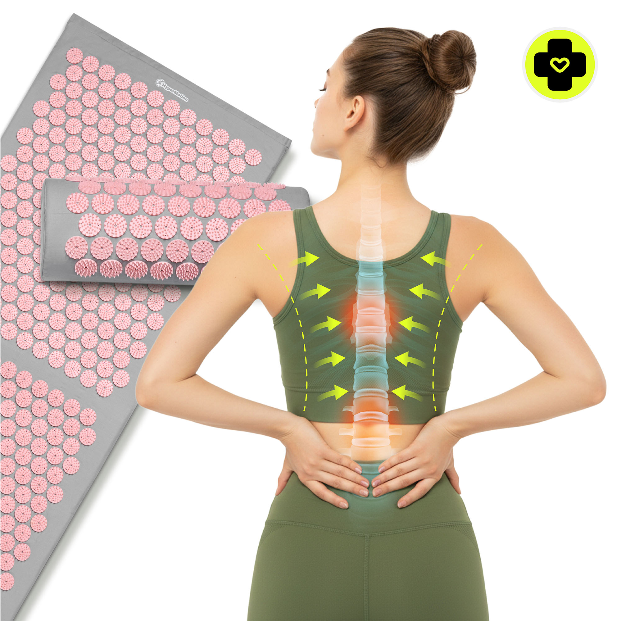 Nagy akupresszúrás szőnyeg párnával és huzattal - 130 cm HyperMotion szürke és rózsaszín