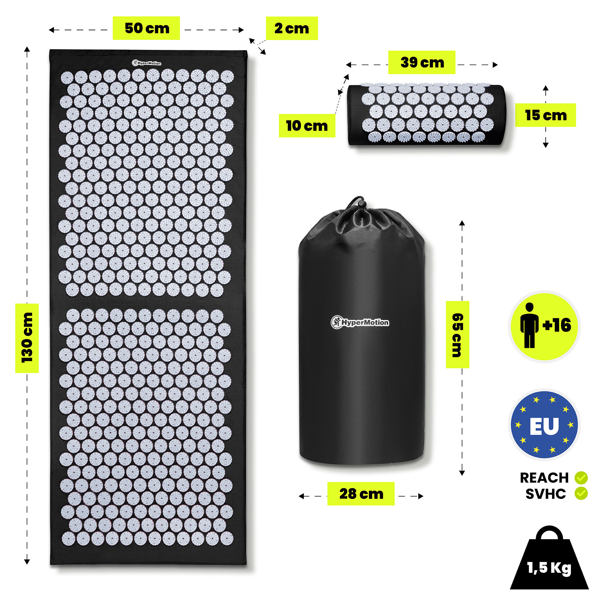 A HyperMotion akupresszúrás szőnyeg a hagyományos kínai akupresszúrás technikákat ötvözi a modern dizájnnal és a kiváló minőségű kidolgozással. A relaxációra és regenerációra tervezett szőnyeg segít megnyugtatni a testet, ellazulni egy fárasztó nap után, és visszanyerni a komfortérzetet. Teljes értékű relaxációs zóna – a szőnyeg, az ergonomikus párna és a praktikus huzat tökéletes szettet alkot az otthoni relaxációs rituálékhoz és a napi feltöltődéshez.