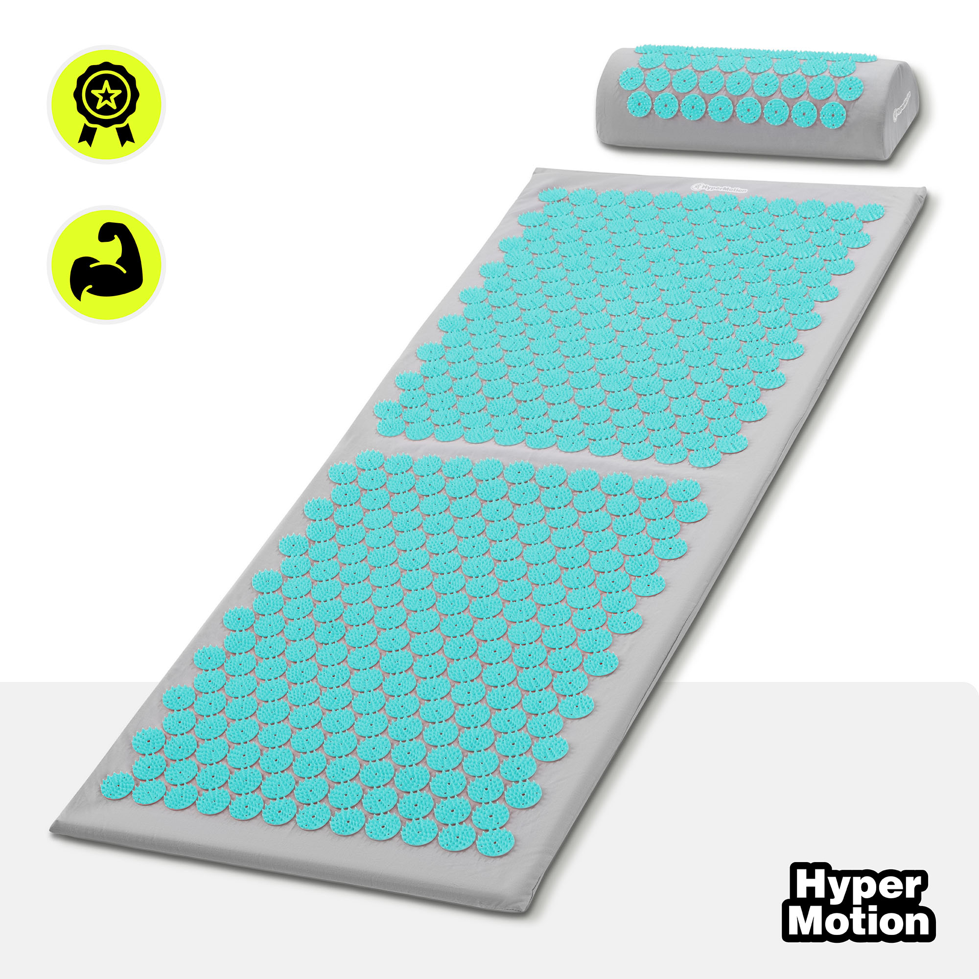 Nagy akupresszúrás szőnyeg párnával és huzattal - 130 cm HyperMotion szürke-menta