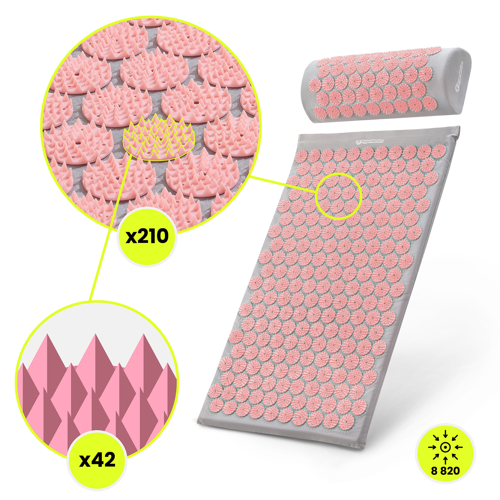 Akupresszúrás szőnyeg párnával és huzattal - 72 cm HyperMotion szürke és rózsaszín