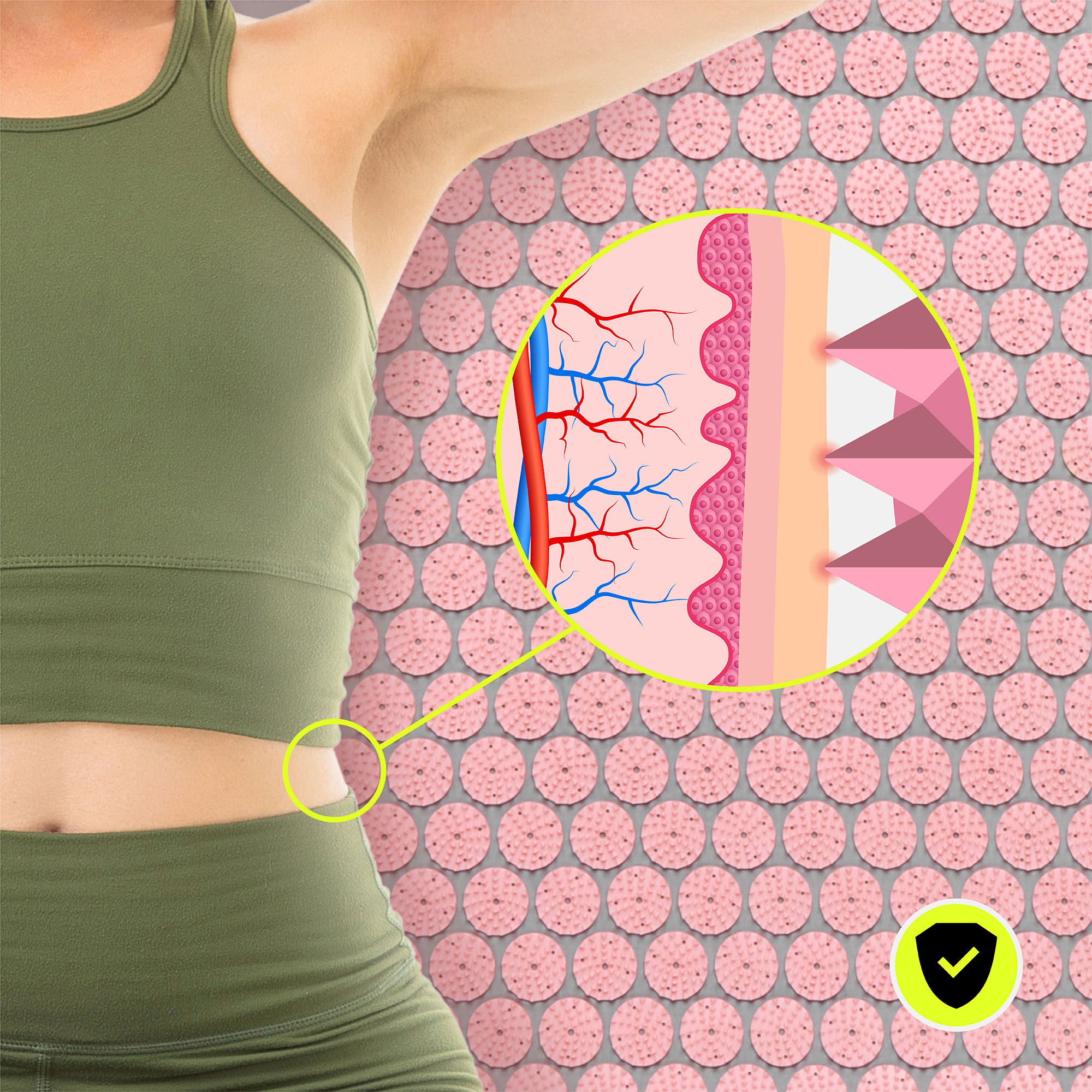 A 72 cm-es HyperMotion akupresszúrás szőnyeget úgy tervezték, hogy hatékonyan célozza meg a test kulcsfontosságú területeit. Kényelmes felülete és tüskéi elhelyezése lehetővé teszi a felszíni pontok precíz stimulálását , elősegítve a feszült izmok ellazulását és gyengéd nyugtató hatást biztosítva stressz vagy megterhelés után. A tüskék tartós ABS műanyagból készültek, biztonságosan lekerekített végekkel, biztosítva, hogy a nyomás érezhető legyen, mégis kényelmes legyen a bőrhöz. A szőnyeg tökéletes a mindennapi regenerálódási gyakorlatokhoz, elősegíti a test általános kényelmét és a relaxációhoz kedvező környezetet teremt.