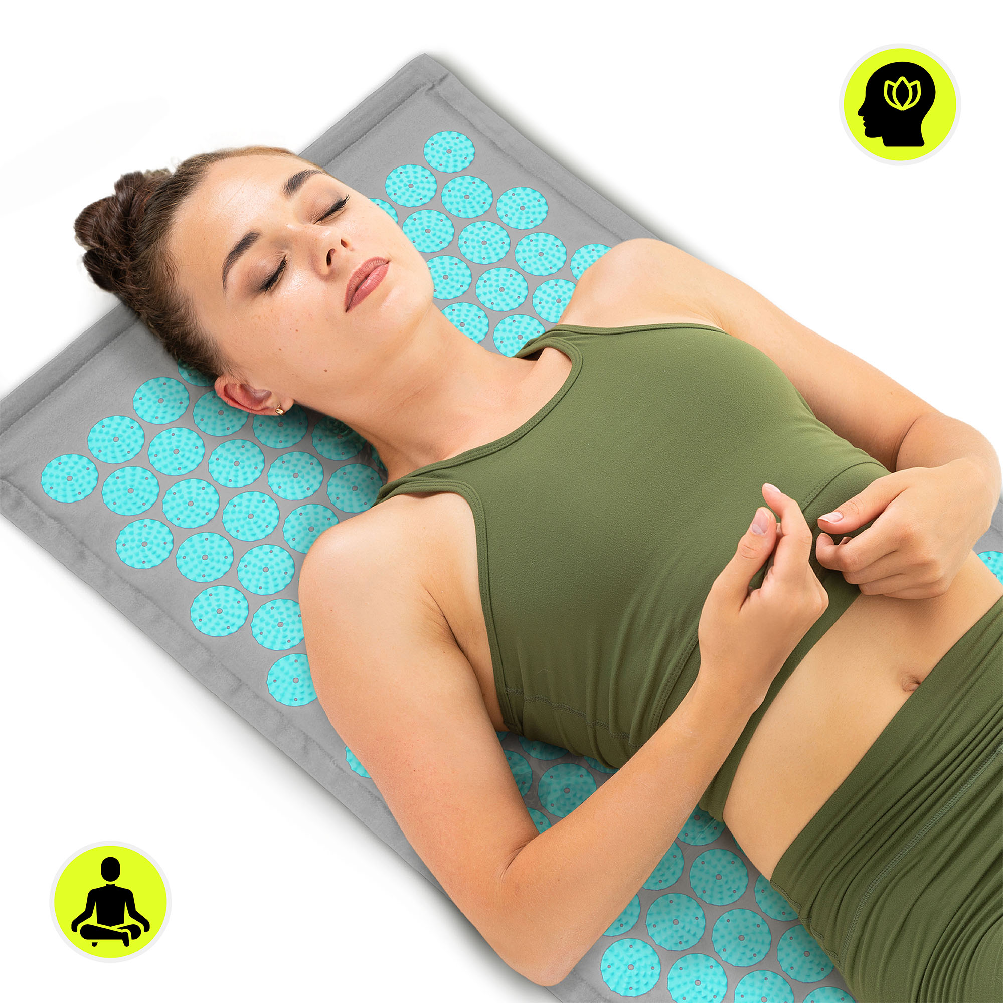 Öko vászon akupresszúrás szőnyeg kókuszrosttal és hajdinapárnával – 68 cm HyperMotion szürke-menta